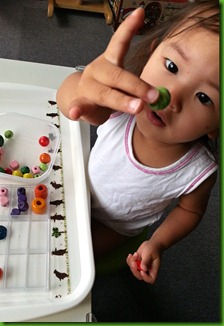 其實 mappi 1歲多就開始玩這 10 Cubes, 玩到厭了. 但當我包好 10 Cubes, 變身為 Pink Tower 後 mappi 竟然搶著要玩! (又再證明「換湯不換藥」是行的!)
